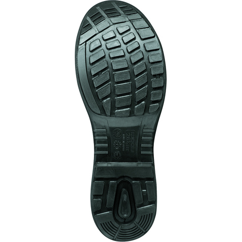 ・靴底のかかと中央部に一段低く配置されたブロックが接地時に衝撃を分散させます。