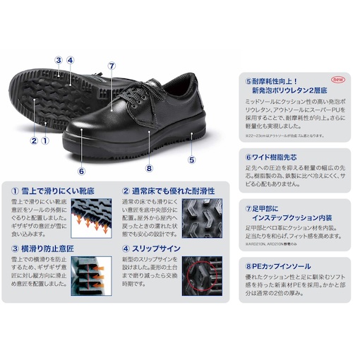 ・雪上でも通常の床でも滑りにくい、新開発の靴底でオールシーズン使える安全靴です。
