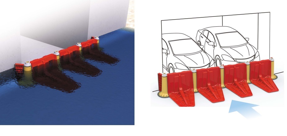 工具なしでスピーディに組み立てることが出来るプラスチック製軽量止水板。