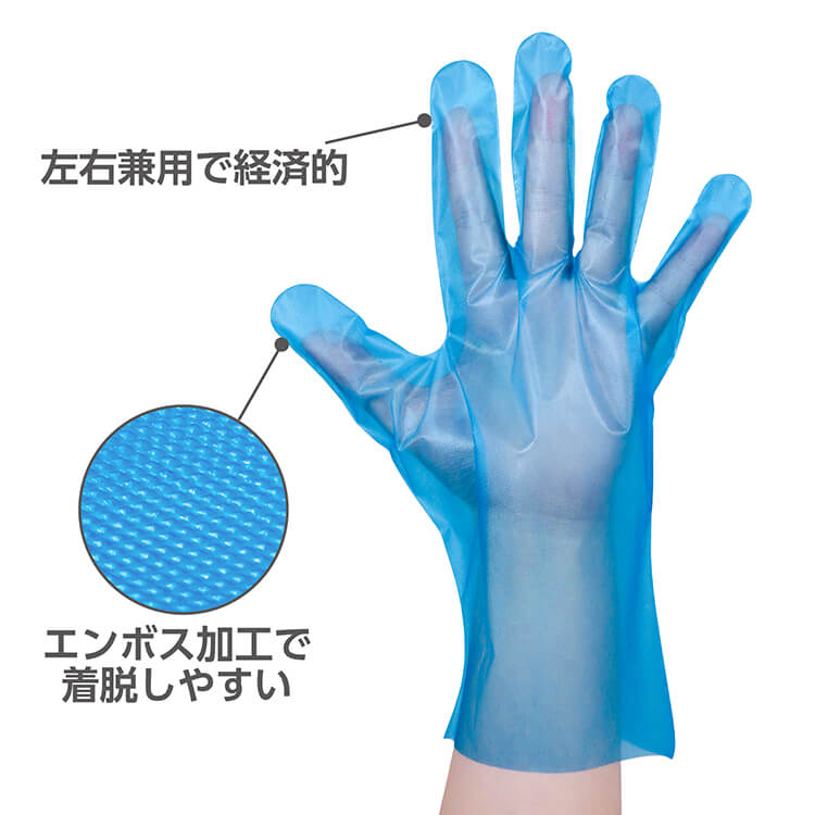 ポリエチレンの中でも良く伸びるなめらかなCPE素材を使用し、指先までフィットしやすいので作業効率は高く低コストでお使いいただけます。