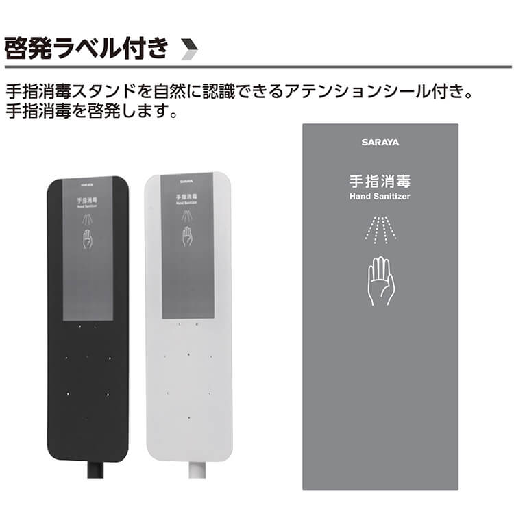 ・啓発ラベル付き 手指消毒スタンドを自然に認識できるアテンションシール付き。