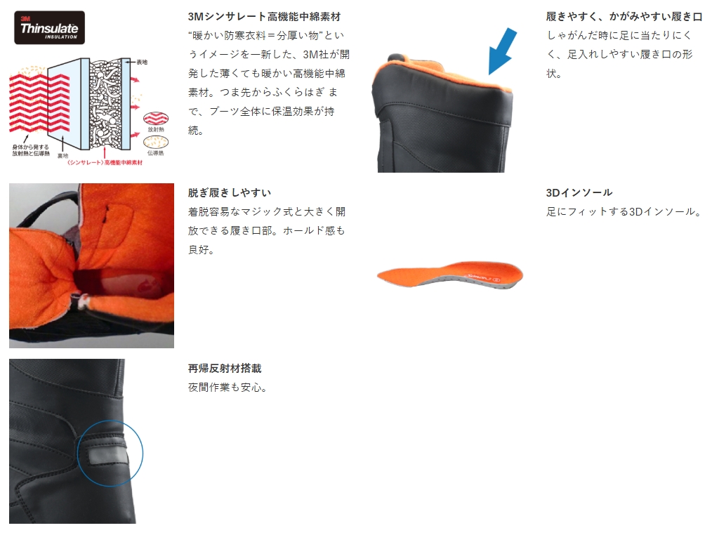 ・3Mシンサレート高機能中綿素材を使用。 ブーツ全体に保温効果が持続。
