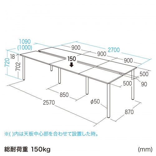 ・サイズ:W2700×D1000×H720mm、天板/W2700×D1000×t18mm