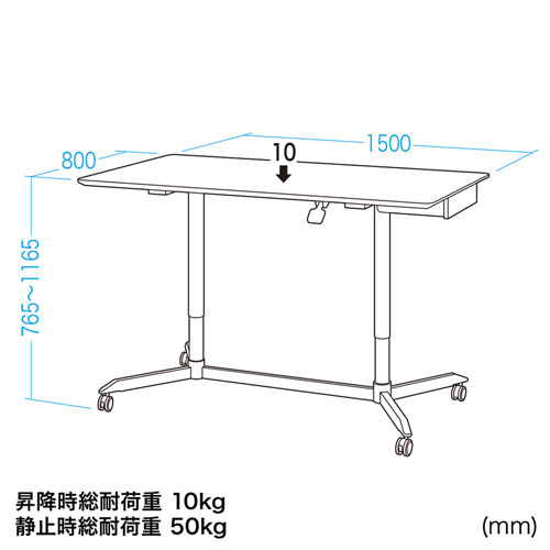 ※天板を上下させる際に天板上には耐荷重を超える荷重を掛けないでください。天板が急降下しケガや製品破損の原因となります。