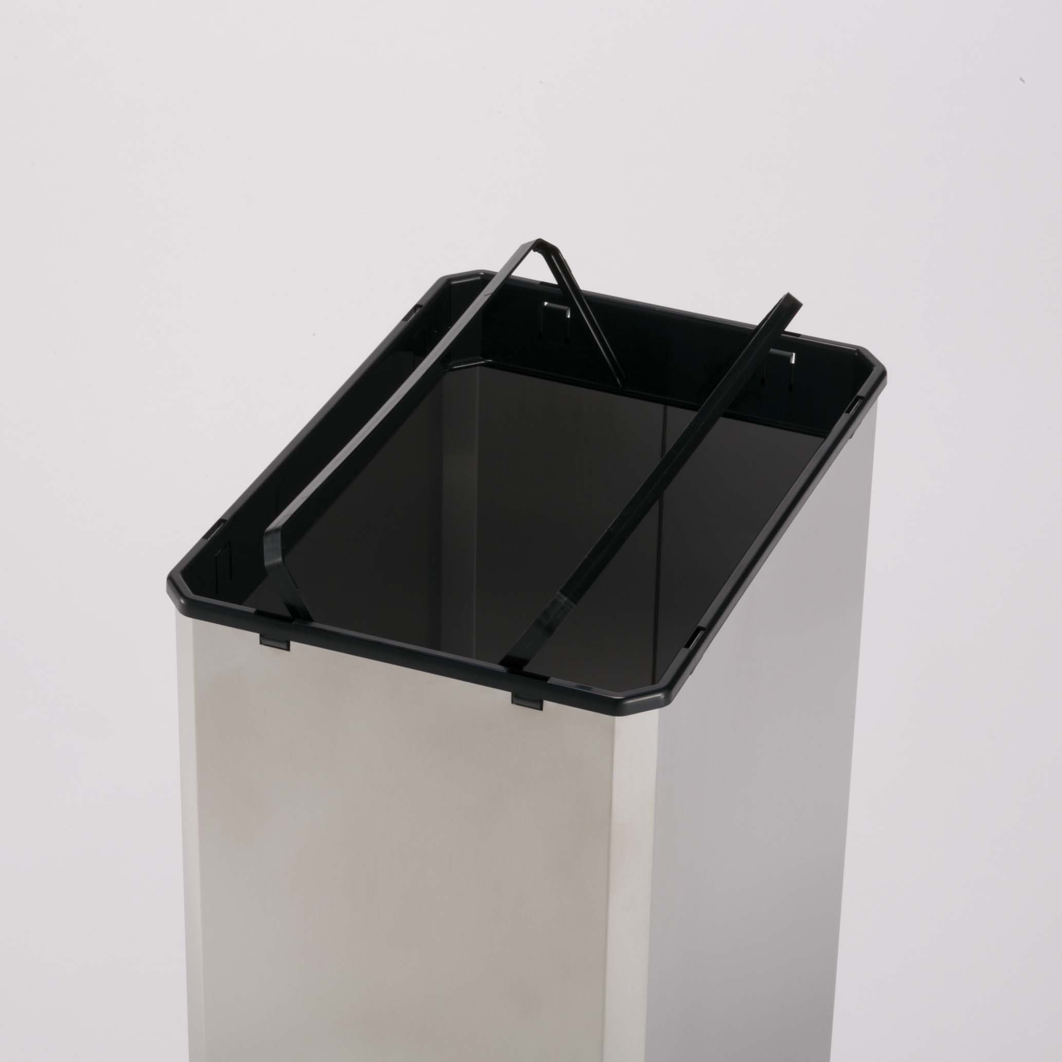 利用者にペーパータオルを丸めて捨ててもらうことにより使用済みペーパーが約3倍収集できるゴミ箱です。