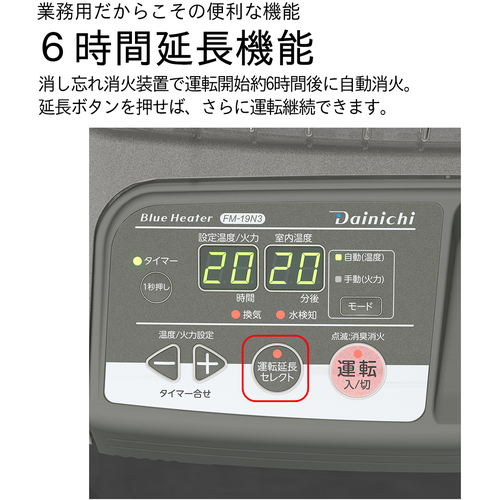 ・ご使用時間に合わせて6時間、9時間、12時間から選べる運転延長機能で消し忘れを防ぎます。