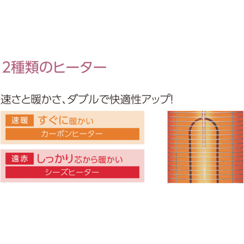 ・芯から暖かいシーズヒーターと運転ONですぐ暖かいカーボンヒーターをダブルで使用した遠赤外線ヒーターです。