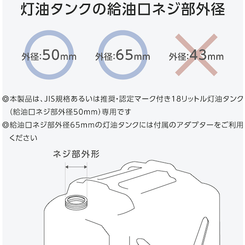・接続タンクの給油口ネジ部外径:50mmまたは65mm