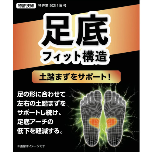 足への衝撃を軽減する2つのフィット構造!