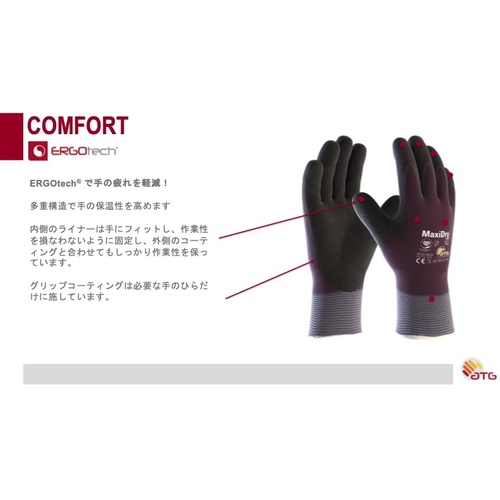 ・ハイグレードニトリルコーティングにより、優れた耐水・耐油機能を備えた手袋です。