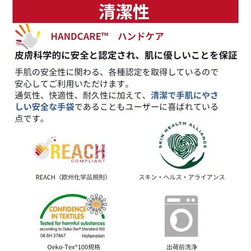 ・国際NPOスキン・ヘルス・アライアンスによって皮膚科学的に安全と認証されている手肌にやさしい手袋です。