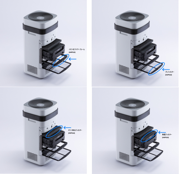 ・イオン化ワイヤーフレームにより帯電した粒子を、この集塵フィルターで吸着します。一旦付着した粒子は電源を切った後もフィルターから剥がれ落ちることはありません。