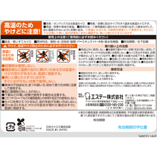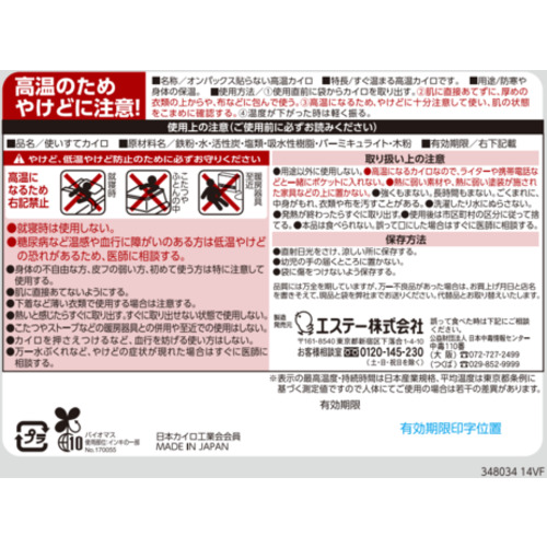 ・原材料:鉄粉・水・活性炭・塩類・バーミキュライト・木粉・吸水性樹脂
