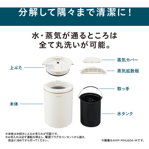 水・蒸気が通るところはすべて丸洗い可能なスチーム式加湿器!