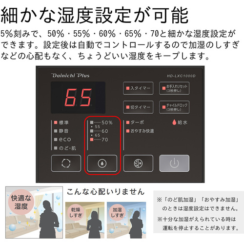 ・50~70%の5%単位でお好みの湿度を設定できます。