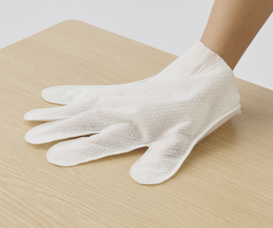 ・使い切りタイプの清掃用不織布手袋。