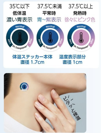 ・体温を測定しやすい所(首、耳下、額、手首内側)に貼付