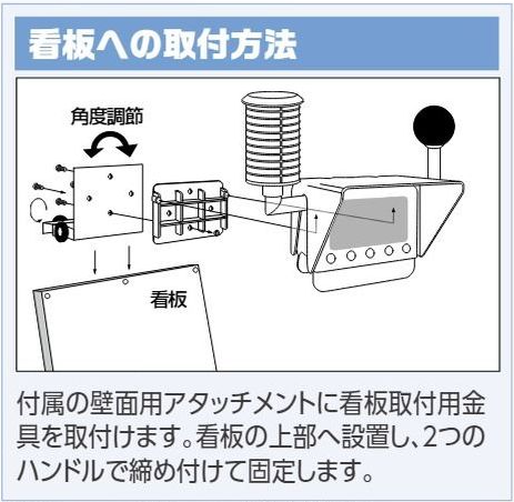 ・看板取付用金具付き。左右のダイヤルで上下に角度調整