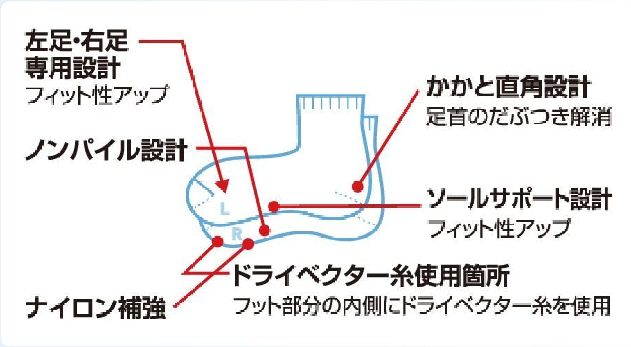 ・「ドライベクター」には、糸自体に、酸、アルカリを中和する効果「pHコントロール機能」があり、汗や洗剤などによってアルカリ化されやすい繊維を中性に保ち、優しい感触を保ちます。