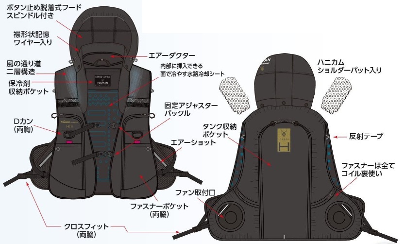 ・両肩~両胸まで2重構造で、顔にも風が駆け抜ける